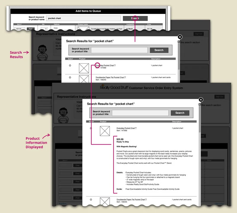Really Good Stuff decided to move their order entry system to one that was provided by their ecommerce platform vendor. However, the default system did not meet the needs of customer service and the user experience was difficult and confusing. I was tasked with creating a solution to resolve these issues.